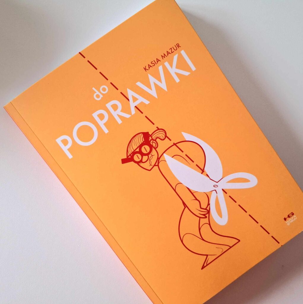 Kasia Mazur kreśli „do POPRAWKI” swoją charakterystyczną, lekko figlarną, ale wyrazistą kreską. Mnie osobiście przypomina ona postacie z „Było sobie życie” – głównie przez sposób rysowania nosów. Sposób wydania i kolorystyka igrają z czytelnikiem, prowokując do tego, by się do czegoś przyczepić.