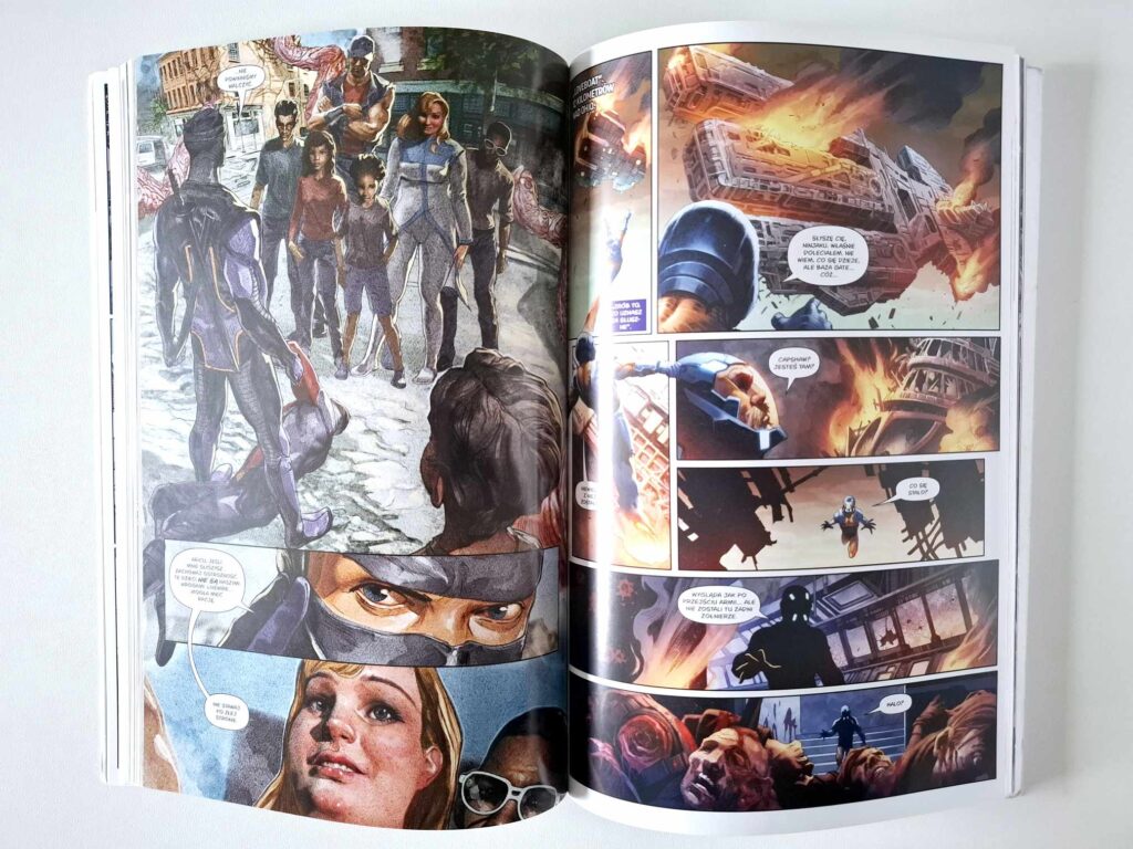 W tle przewijają się drużyny po obu stronach konfliktu, takie jak Renegaci czy Gate. Pojawiają się także inne postacie, lecz najczęściej pełnią rolę tła lub wykonują epizodyczne misje. Najbardziej szkoda mi Zephyr – superbohaterki z nadwagą, która przelatuje przez lewą stronę okładki, ale w samym albumie pozostaje w cieniu. Uśmiecha się uroczo, wypowiada kilka zdań na koniec i… to tyle. A przecież chętnie poczytałbym o jej solowych przygodach – w końcu nagroda Eisnera zobowiązuje, a takie wyróżnienia na mnie działają.