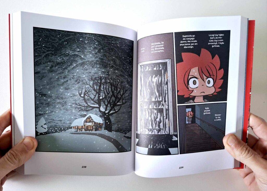 Tymczasem Seconds okazało się prawdziwą petardą – choć, co ciekawe, opowieść obyczajowa stanowi tu fundament fabuły. Poznajemy Katie w bardzo intymnej relacji – dosłownie wchodzimy jej pod skórę, śledzimy myśli, obserwujemy rozterki. Tym razem jednak O’Malley rezygnuje z geekowskich wtrętów o grach i komiksach. Zamiast tego sięga po motywy rodem z opowieści o nawiedzonym domu. Mamy tu magię, zaczarowane grzybki, ducha domu oraz tę jedną, która zna wszystkie tajemnice – bo przekazała je jej matka… czyli, krótko mówiąc, wiedźmę.