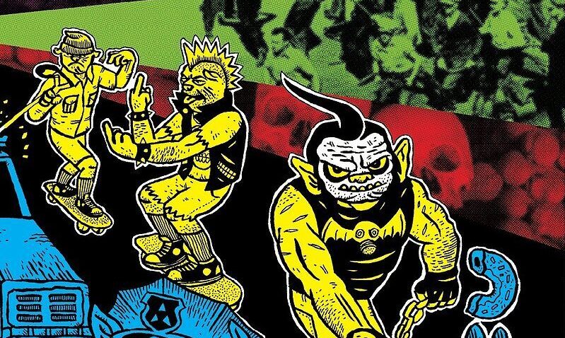 Pierwsze co mnie uderza, to że Łukasz urodził się w 1983 roku, co, jak na moje odczucia, dobrze rokuje. Sam przyszedłem na świat na początku lat 80-tych, dorastaliśmy więc w tych samych warunkach, wystawieni byliśmy na te same wydarzenia w komunistycznej i postkomunistycznej polskiej popkulturze i obaj przechodziliśmy etap superbohaterów i TM-Semic, o którym, nawiasem mówiąc, Łukasz napisał książkę. Doskonale, książka rzeczywiście też mi gdzieś śmignęła, mimo że nie miałem jej nigdy w rękach. Czytam dalej. Nie ukończył żadnych studiów artystycznych, bo nie chciał… Teraz to u mnie już wygrał. Taka deklaracja doskonale pasuje, aby ją wypisać na sztandar, przy którym będziemy czytać Violent Skate Bulldogs, bo czymże jest ten komiks?
