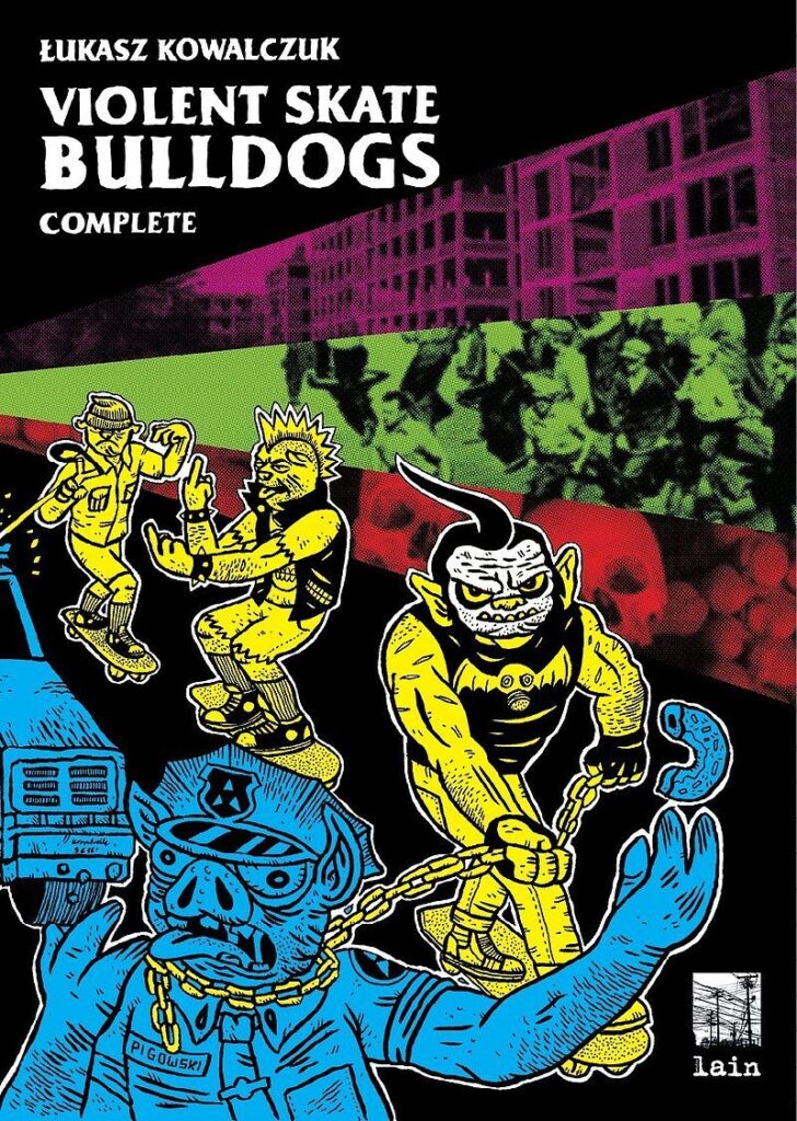 Violent Skate Bulldogs to komiks polskiego autora, Łukasza Kowalczuka, który – choć siedzi nieco z boku oferty – zasługuje na uwagę. Od dłuższego czasu śledzę poczynania Studia Lain na polskim rynku komiksowym. To małe wydawnictwo z Iławy znalazło swoją niszę: komiksy oryginalnie wydawane przez brytyjskie 2000AD i inne ulubione tytuły właścicieli. W ich katalogu znajdziemy epickie serie jak Sędzia Dredd, Slaine (a właściwie Sláine), czy komiksy, do których scenariusze pisał Alan Moore – nawet jeśli to tylko jego wczesne prace, nazwisko tego „alchemika” potrafi sprzedać wszystko. Te kilka ryzykownych, ale trafionych wyborów pozwoliło wydawnictwu złapać tempo, czego efektem jest rosnąca lista tytułów, ostatnio poszerzona choćby o hiszpański Solo. Ale dziś skupmy się na bulldogach na deskorolkach – i przemocy.