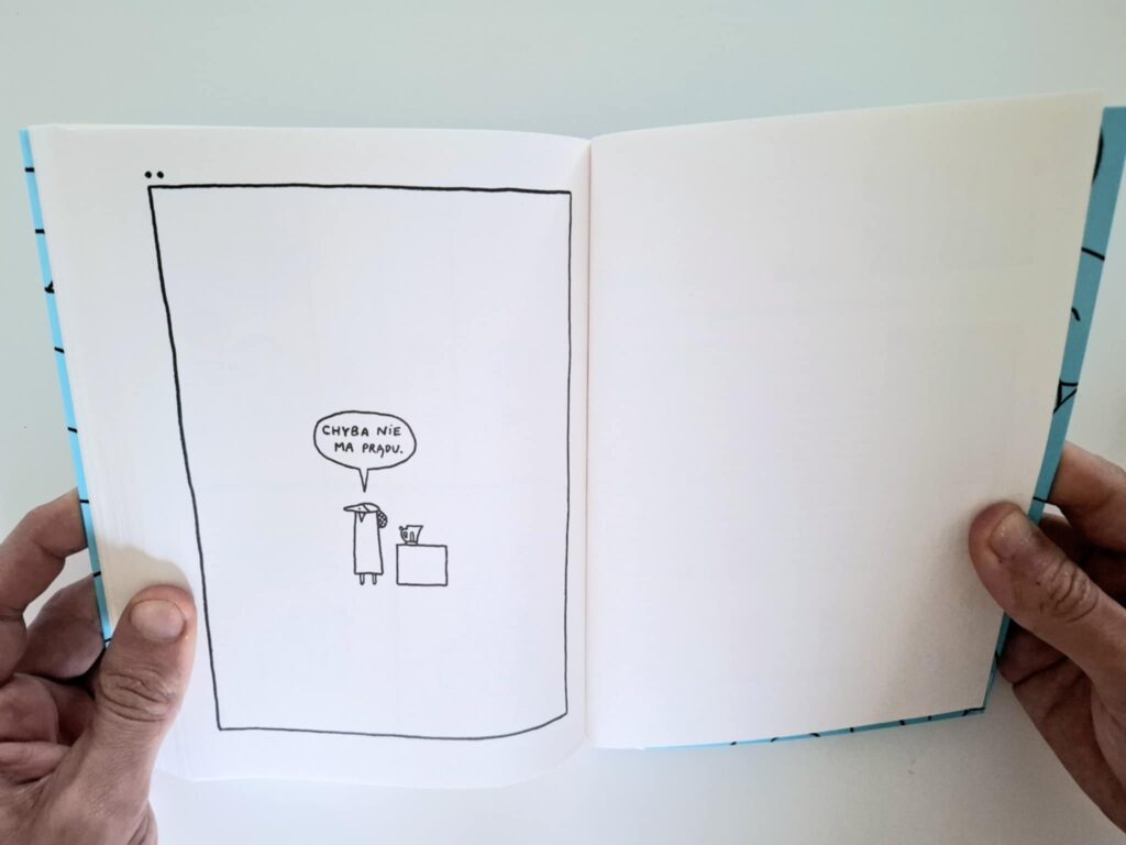 „A niech cię Tesla!” to kolejny tytuł wznowiony przez Kulturę Gniewu z okazji 25-lecia wydawnictwa. Szkoda tylko, że oryginalną różową okładkę zastąpiono niebieską – choć ta również ma swój urok. Z ogromną przyjemnością nadrobiłem też „Będziesz smażyć się w piekle” Prosiaka, a z równie dużą ciekawością sięgnąłem po komiks Jacka Świdzińskiego, pierwotnie wydany w 2013 roku. Nie do końca wiedziałem jednak, na co się piszę – to dzieło minimalistyczne graficznie, a jednocześnie zaskakująco wymagające w odbiorze i interpretacji.