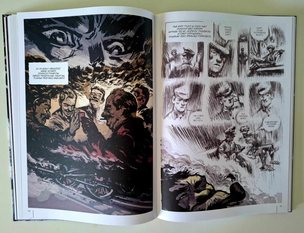 Antoni Serkowski (ilustrator komiksu Niepamięć absolutna) podejmuje temat kolei, stając obok konduktora, który zna pociąg, poszczególne wagony i przedziały tak dobrze, że potrafi dostrzec rzeczy niedostrzegalne dla zwykłego oka. Tym bardziej że podróż opisana w tej historii odbywa się nocą — plansze zalane są tuszem, a tło wypełniają wspomnienia, już lekko zatarty obrazami w głowie narratora. Trzeba być uważnym, by dostrzec w cieniu ducha, który zwiastuje kolejną katastrofę. A te, jak wiadomo, na kolei potrafią być horrorem samym w sobie.