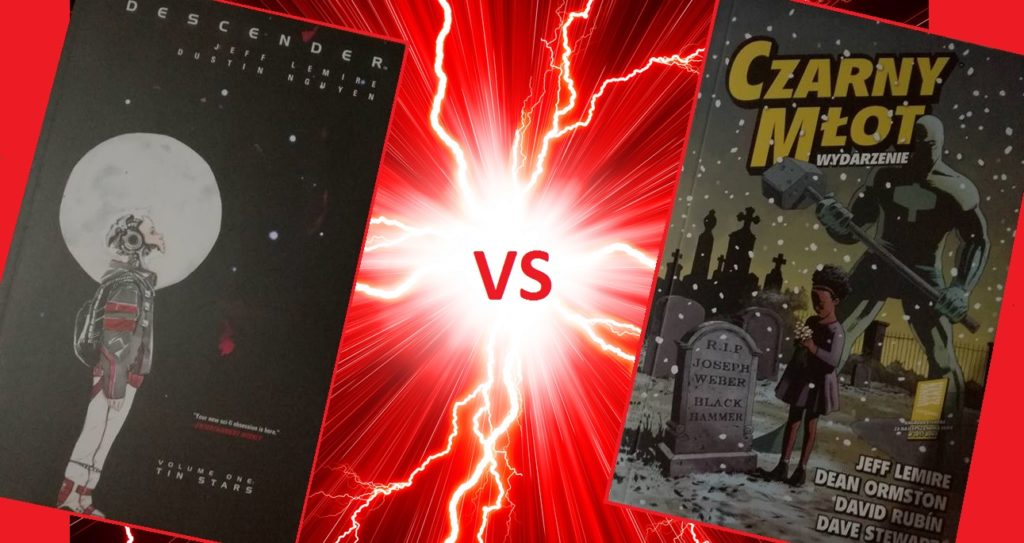 Ku mojemu zadowoleniu Jeff Lemire staję się coraz bardziej popularny w naszym kraju. W styczniu pojawiły się aż dwie pozycje z jego scenariuszem. Mucha Comics przedstawiła nową serię, Descender, a Egmont poprawił szybko uderzenie Czarnym Młotem. Nadal brak moich ulubionych pozycji, ale może i lepiej bo Underwater Welder i Trillium dawno mam w oryginale. Być może rozważacie, którą z tych serii wybrać, dlatego to „Czarny Młot. Zdarzenie” i „Descender. Blaszane Gwiazdy” postawię w przeciwstawnych narożnikach ringu. Let’s get ready for rumble!