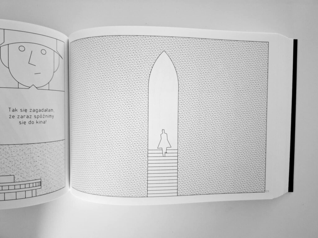 Z drugiej strony, obok chłodnych kresek i geometrycznych układów, pojawiają się plamy tuszu – nienormatywne, niemożliwe do zwymiarowania. To momenty wnikania w poranioną psychikę bohatera, obserwacji z boku, wystawienia go na działanie filmu i sztuki. W komiksie, który przez większość czasu wydaje się odhumanizowany, zimny i inżynieryjnie dokładny, zdanie: „Twoja dusza jest narysowana odręcznie” – uderza z ogromną siłą. Rozsadza system. Zostaje w głowie długo po lekturze.