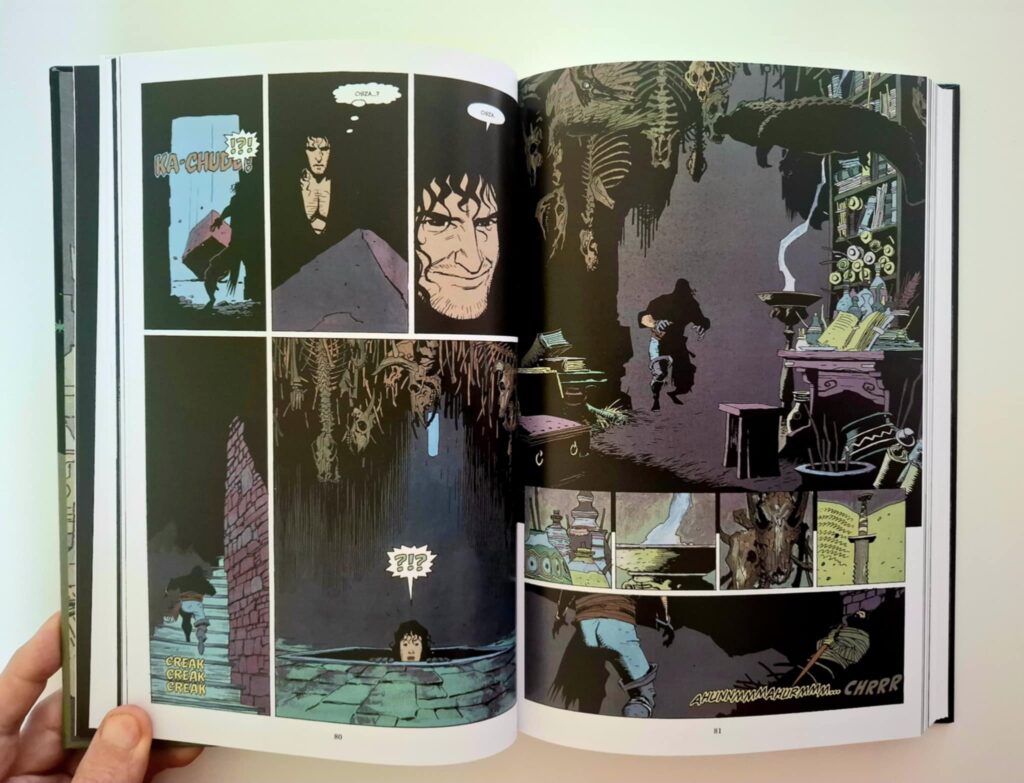 To było drugie podejście do komiksowej adaptacji Fafhrda i Szarego Kocura. Pierwsza miała miejsce w 1974 roku, kiedy to Howard Chaykin, wraz z takimi rysownikami jak Jim Starlin i Walter Simonson, ilustrował scenariusz Dennisa O’Neila w serii Sword of Sorcery… po drugiej stronie mocy, bo w DC. Dark Horse Comics zebrało obie adaptacje i postawiło na nowszą wersję na okładce i w pierwszej części albumu, co ma jak najbardziej sens. Nowe prace są dojrzalsze i lepsze warsztatowo. Choć pierwsi twórcy nie szczędzili serca, uwielbienia do materiału źródłowego i chęci, przed laty brakowało im po prostu możliwości.