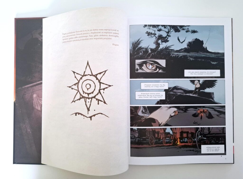 A jak wypada warstwa graficzna? Labiano to solidny rzemieślnik – stworzył schludne, poprawne plansze, momentami zlewające się z tysiącem innych komiksów frankofońskich. Nie można mu odmówić warsztatu, a „Gwiazda pustyni. Tom 2” to album przyjemny dla oka i całkiem estetyczny. Problem w tym, że poprzeczka została postawiona bardzo wysoko – do dogonienia był Marini, artysta o charakterystycznym, malarskim stylu, którego prace Egmont powyszarpywał z rąk innych wydawnictw właśnie ze względu na tę wizualną wyjątkowość.