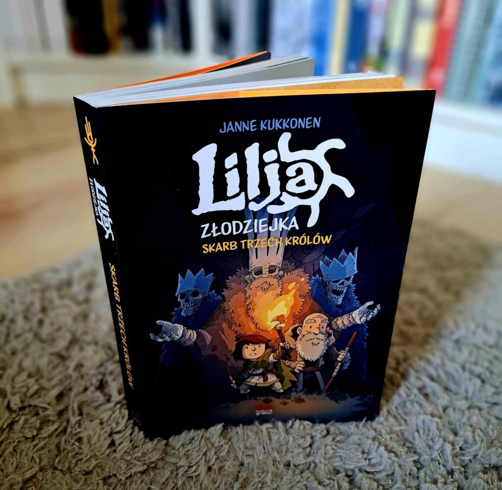 „Lilja złodziejka. Skarb trzech królów” to przygodowy, łotrzykowski komiks fantasy, ilustrowany cartoonową kreską z fikuśnym, przyjemnym w odbiorze obrysem. Czego można się spodziewać w środku? Podróży, poszukiwania skarbów, ogromnych tarapatów, pojedynków (w tym przebijania przeciwników mieczem), zdrad, przyjaźni i niebezpieczeństwa tak wielkiego, że zagraża całemu światu. No — przynajmniej temu wykreowanemu przez Janne Kukkonena. Na szczęście nie brakuje też humoru.