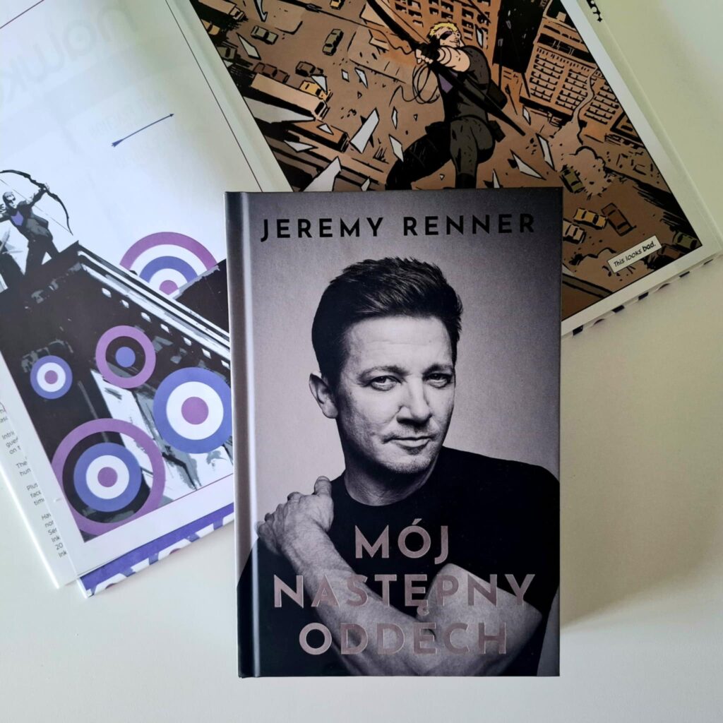 Jeremy Renner wcielał się w rolę Hawkeye’a — superbohatera bez nadprzyrodzonych mocy, uzbrojonego jedynie w łuk, broń o starożytnych korzeniach. „Mój następny oddech” to jednak nie opowieść o superbohaterach w komiksowym rozumieniu (choć pewne skojarzenia z runem Matta Fractiona nasuwają się same – KLIK). Nadal nie znajdziemy tu zagrożeń na skalę planetarną czy kosmiczną. Zagrożenie jest realne, fizyczne i śmiertelnie poważne — a jego konsekwencje odczuwają nie tylko sam Renner, ale też jego najbliżsi. Walka o każdy oddech i późniejszy powrót do zdrowia to historia autentycznie inspirująca, mająca potencjał, by poruszyć i zmienić życie innych. Właśnie dlatego te wspomnienia zostały spisane — choć z pewnością łatwiej byłoby zamknąć ten rozdział i więcej do niego nie wracać, niż z taką dokładnością go odtwarzać.