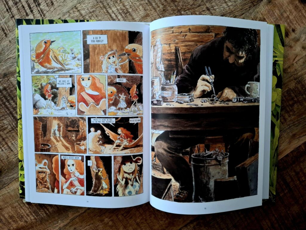 Skojarzenia nasuwają się same — Dzwoneczek, Muminki, Królewna Śnieżka, a nawet książę zaklęty w ropuchę (choć wersja przedstawiona tutaj jest zwyczajnie ohydna). Nie mamy tu jednak do czynienia z reinterpretacją znanych historii, lecz z próbą zbudowania własnego, baśniowego świata — pełnego zupełnie nowych postaci, z których każda mogłaby z powodzeniem pociągnąć własną opowieść. Gdyby rozdzielić te drobne ludziki na osobne historie, powstałaby antologia w stylu „Baśni braci Grimm” — z równie gęstym, niepokojącym klimatem i fabułami naszpikowanymi brutalnością.
