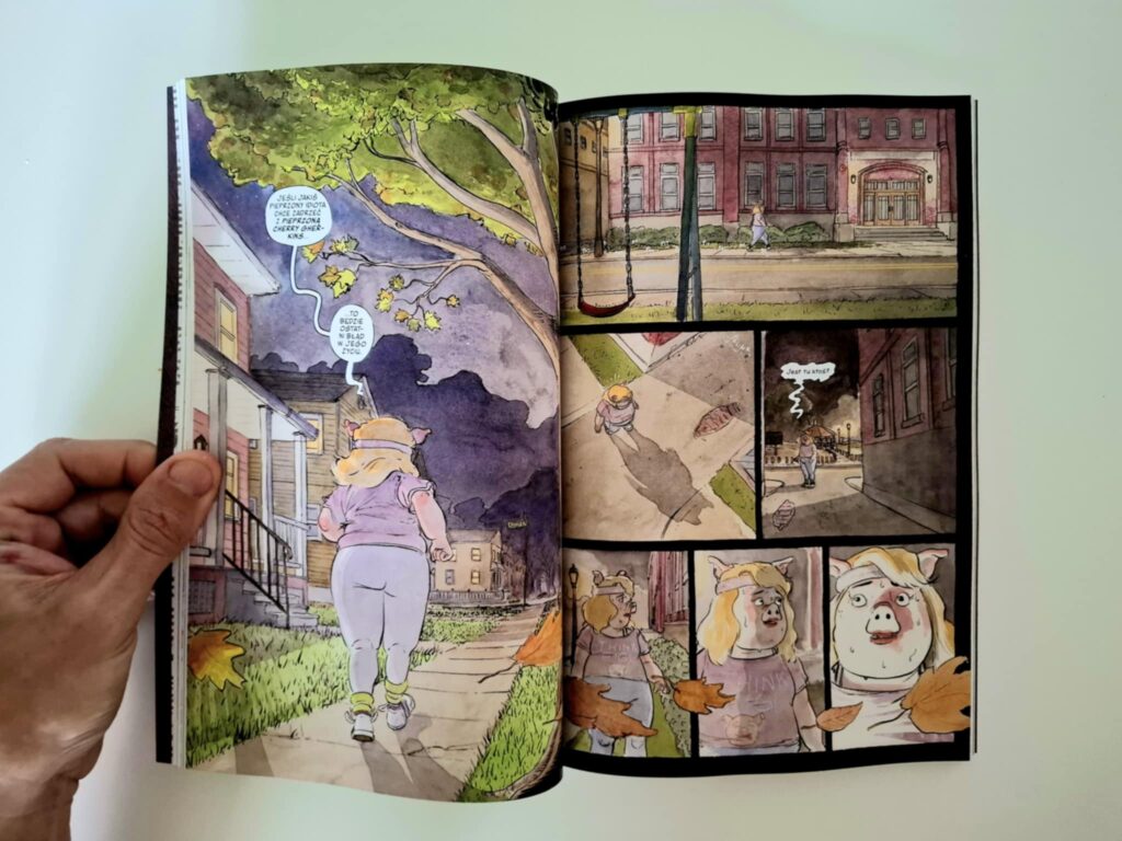 Ale jest w „Pod drzewami gdzie nikt nie widzi” jeszcze coś więcej — to także małomiasteczkowa opowieść o akceptacji. Choć nikt niczego nie mówi wprost, z czasem okazuje się, że wszyscy wiedzą o wszystkich wszystko. I — co zaskakujące — nikt nie ma nic przeciwko cudzym dziwactwom, słabościom, a nawet brakom kontroli. To komiks co najmniej niepokojący, ale jednocześnie skłaniający do refleksji. No i — nie mogę się powstrzymać — wygląda absolutnie przepięknie.