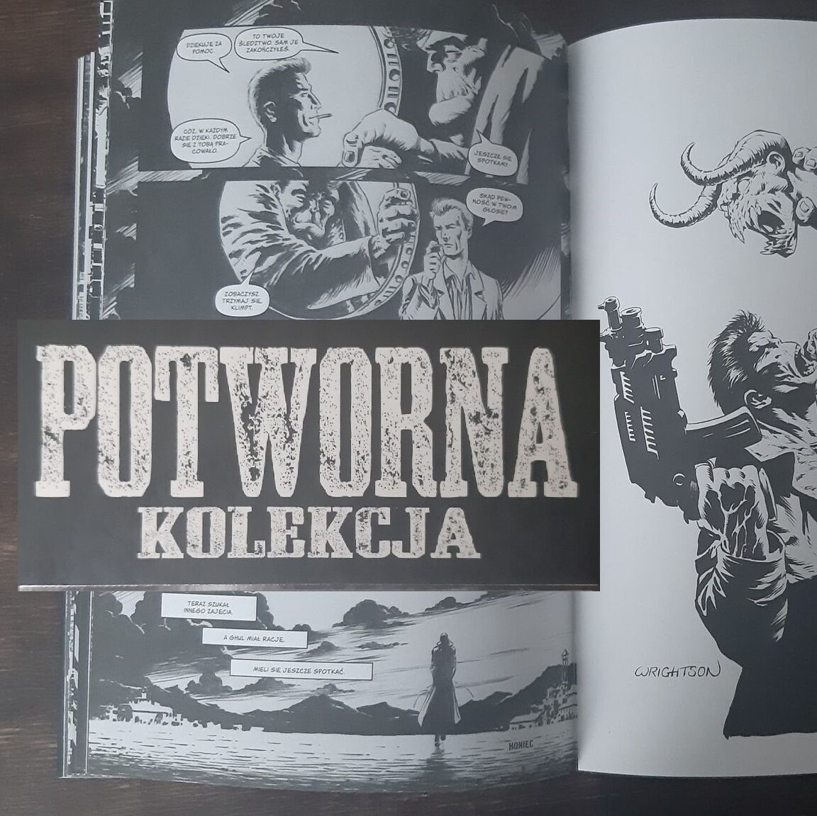 Potworna kolekcja to kolejny potężny wolumen na polskim rynku komiksowym. Wiadomo, duży format to dla europejskich tytułów nie nowość, ale amerykańskie zeszyty, tworzone pod mniejszy szablon, po powiększeniu robią jakieś takie dodatkowe wrażenie. Podczas gdy Egmont potwierdził dominację na polskim rynku przez Przedwiecznych Kirby’ego i Batmana Black and White, KBOOM po cichu opanowuje swoje poletko pod szyldem „horror”. Potworna kolekcja to logiczna kontynuacja wydanego przed rokiem Frankenstein żyje, żyje!, i to z kilku powodów. Historie określić można jako opowieści z dreszczykiem, strony zalane są czarno-białymi rysunkami, a na okładce widnieją te same nazwiska. Steve Niles i Bernie Wrightson.