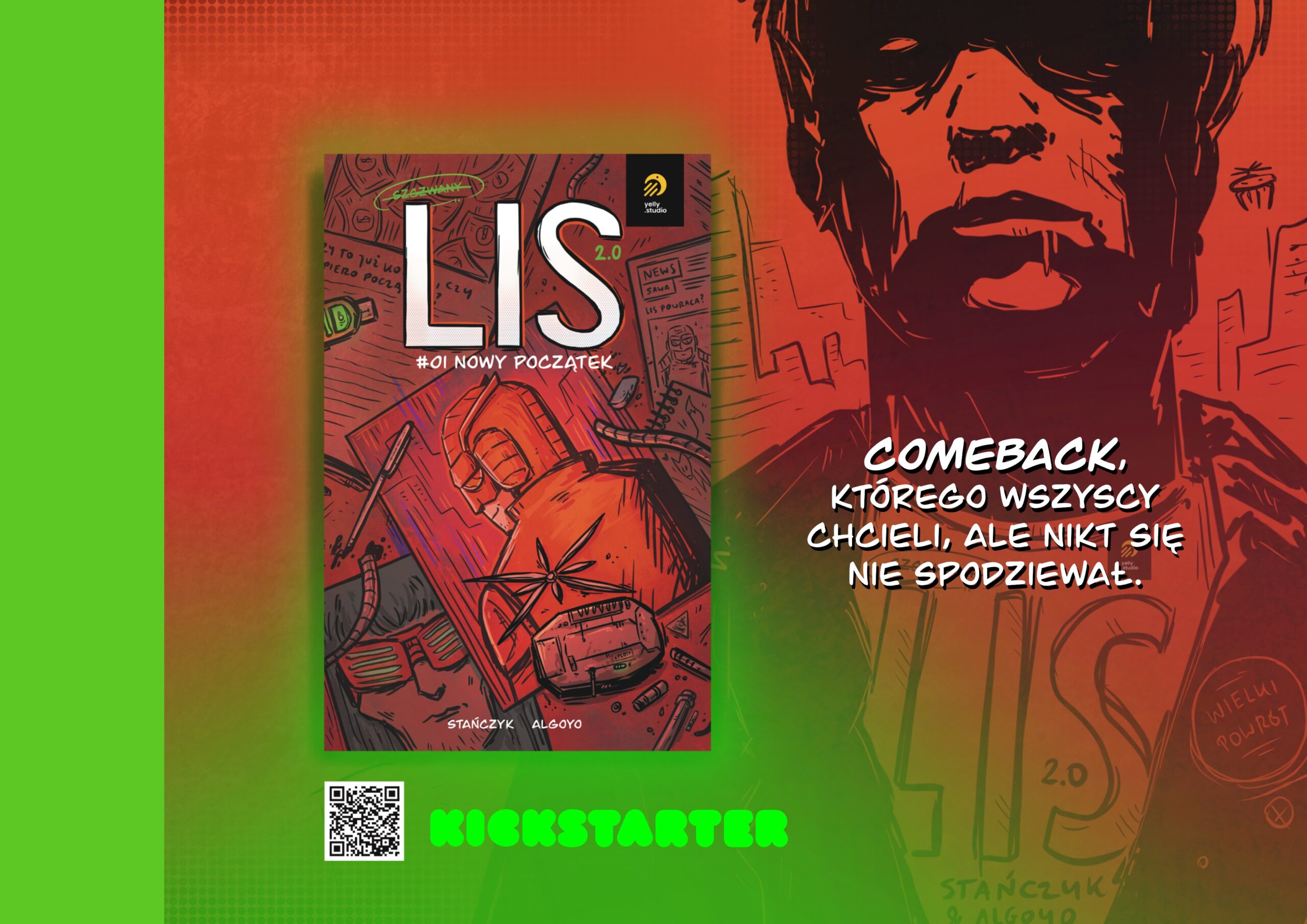 Jeśli ciekawi Was, jak Dariusz Stańczyk rozwinął się jako scenarzysta od czasu ostatniego zeszytu i co do lisiego uniwersum wniesie ALGOYO, zajrzyjcie na Kickstarter Lisa 2.0 i śledźcie kampanię na bieżąco – tym razem seria zostanie wydana po polsku i angielsku.