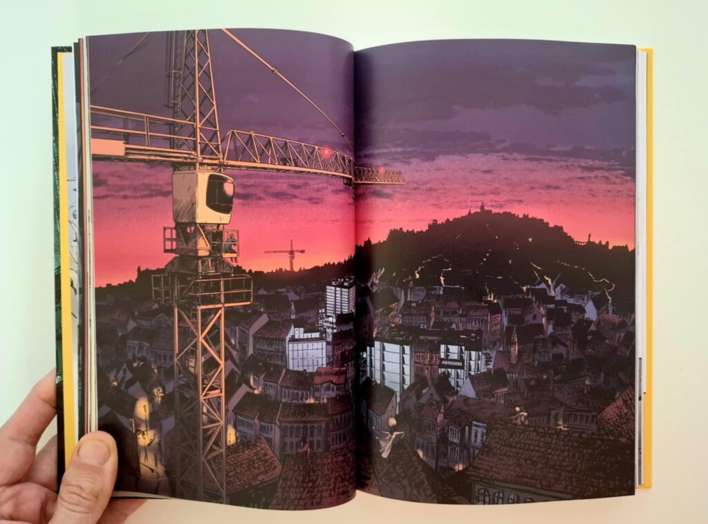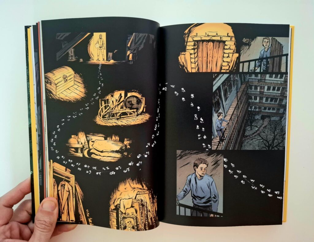 Trzeba też przyznać, że Krel Osoha, odpowiedzialny za zilustrowanie scenariusza Matochy, wykonuje kawał świetnej roboty. Owszem, w partiach dialogowych bywa nieco zbyt umownie, a tła w kadrach potrafią być skromne, wręcz symboliczne. Ale gdy przychodzi do sekwencyjnych rozkładówek i pełnostronicowych ilustracji – Osoha odpala ogień. I to czasem dosłownie. Uwielbiam sekwencję pościgu za szczurem, który uciekł z mieszkania Vaška pod jego nieobecność – dynamiczna, zabawna, wizualnie świetnie rozpisana. A ilustracje miasta w świetle zachodzącego słońca naprawdę czarują klimatem. W tych momentach trochę żałuję, że format komiksu jest raczej kompaktowy – bo rozmach niektórych plansz aż się prosi o większy format. Bez problemu by go udźwignęły.